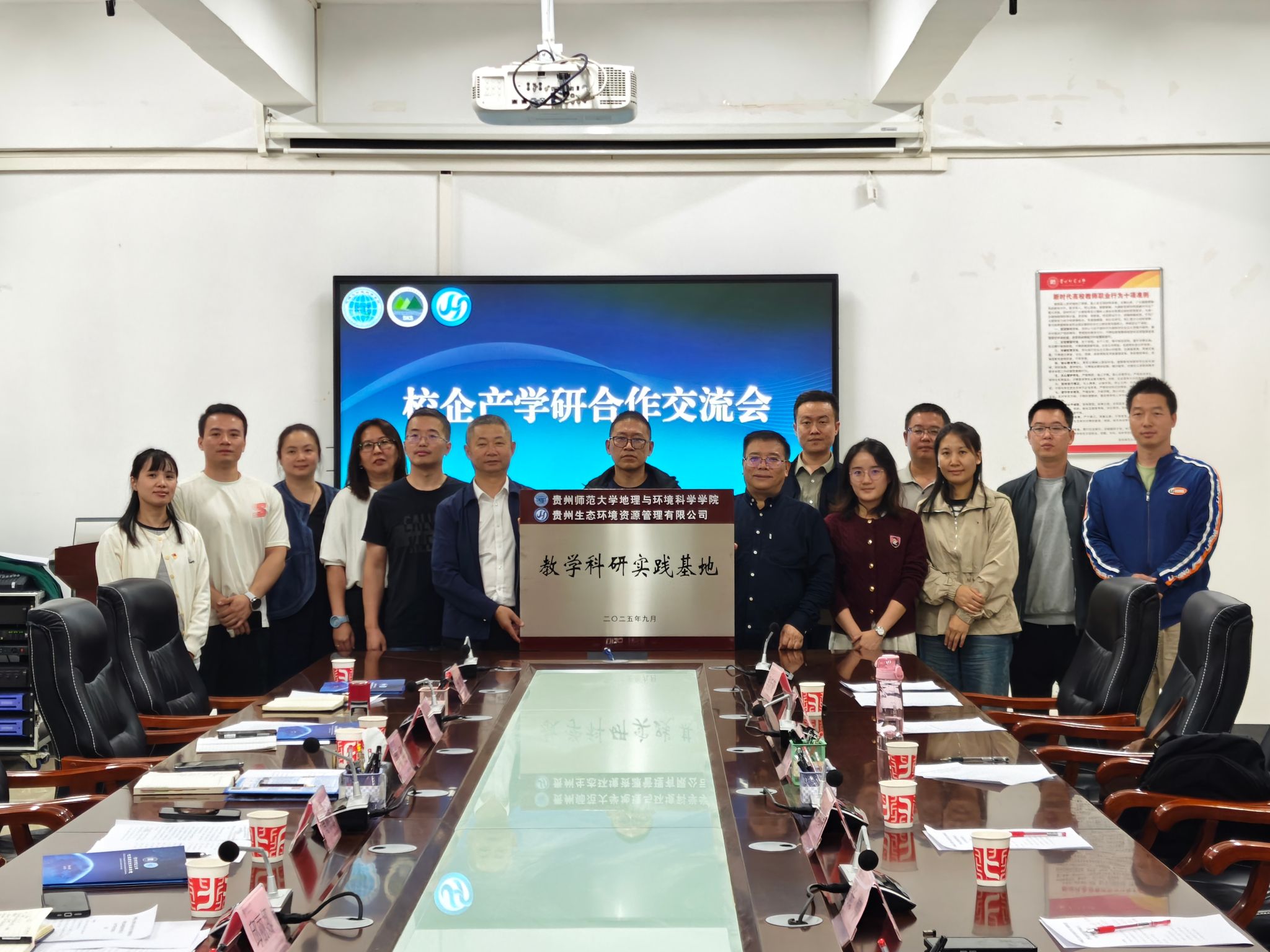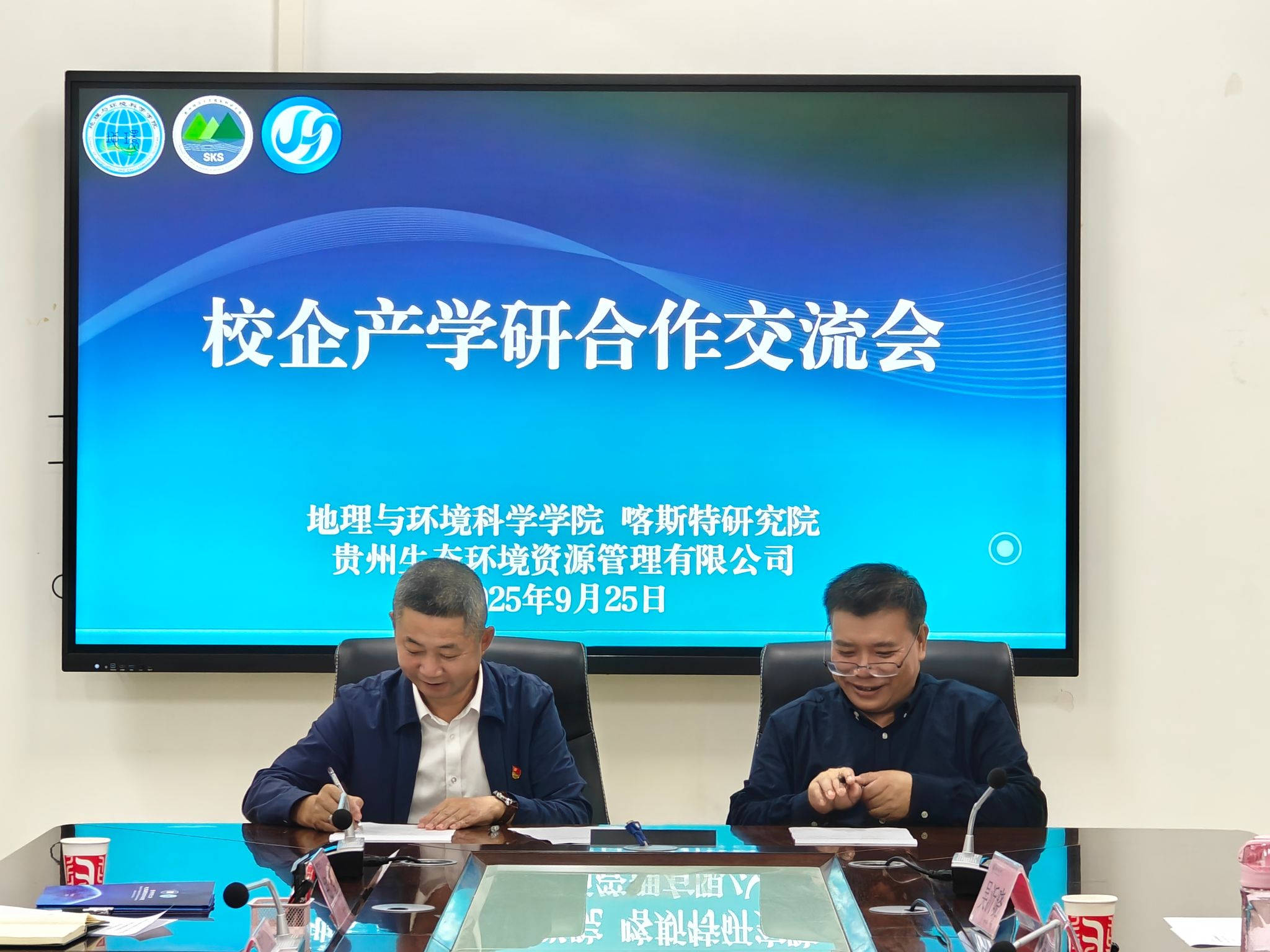 9月25日下午,贵州师范大学地理与环境科学学院、喀斯特研究院与贵州生态环境资源管理有限公司校企产学研合作交流会(暨校企产学研合作签约仪式)在贵州师范大学花溪校区地理与环境科学学院举行。
