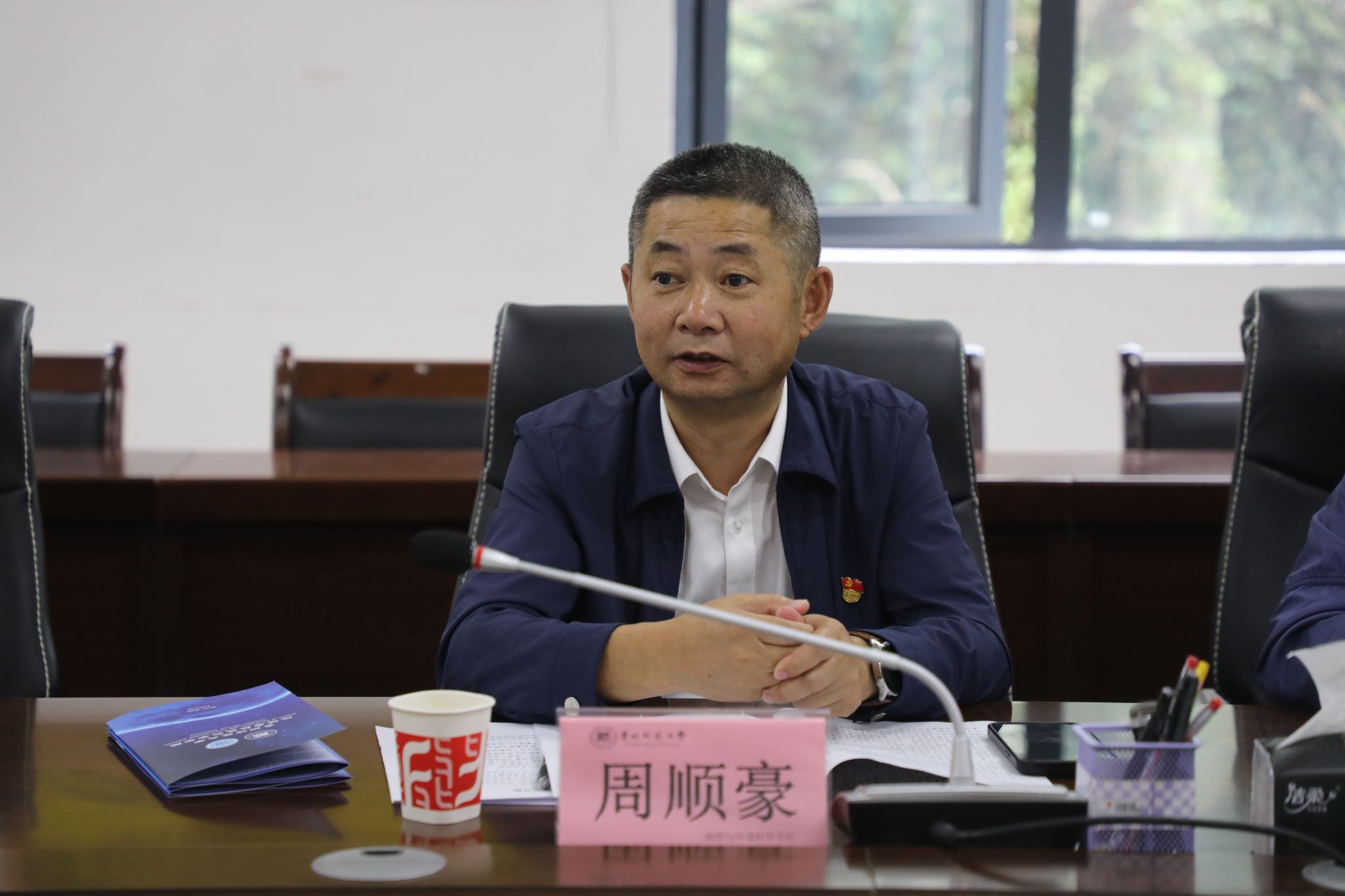 贵州生态环境资源管理有限公司党支部书记、董事长周顺豪,副总经理刘刚、邱丽娜,党政综合部部长刘佳佳、副部长李睿,省医危废处置中心工艺技术人员郑煜;我院院长周忠发,院长助理环境科学系主任张帅,实验室主任蔡雄飞,教师喻阳华、杨华、付茂、吴沂晓、张坤等参会。会议由院长助理张帅主持。