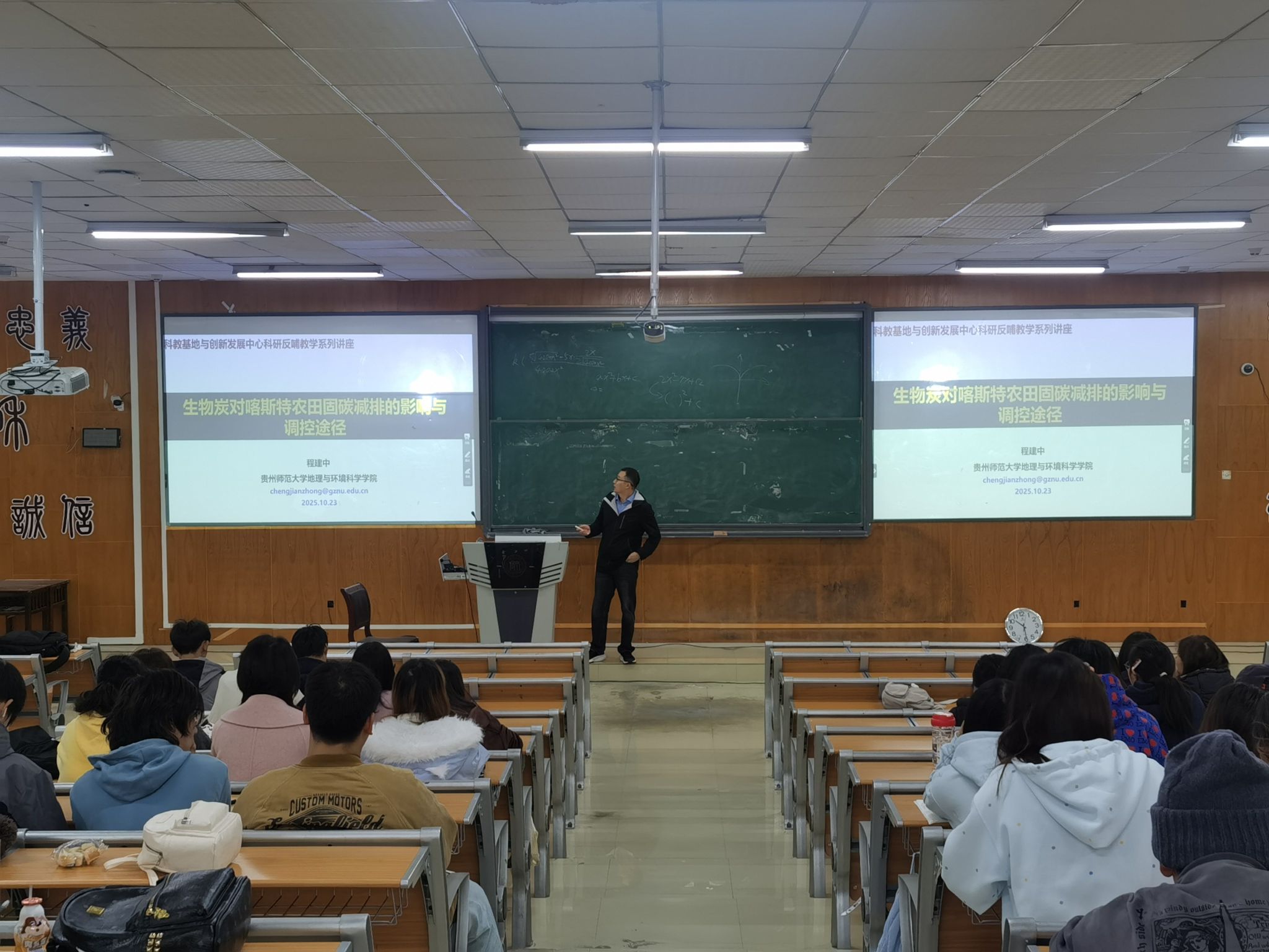 为深入贯彻落实学院高质量发展战略,立足喀斯特地区生态特色,学院科教基地与创新发展中心联合教工黄大年式教师团队党支部,于2025至2026学年第一学期教学实践周期间,成功举办“科研反哺教学”系列学术讲座。