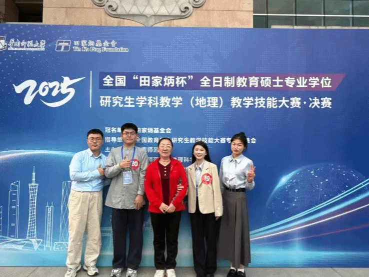 11月21-26日,第十一届全国“田家炳杯”全日制教育硕士专业学位研究生学科教学(地理)教学技能大赛决赛在华南师范大学顺利举行,作为全国影响力和规模最大的教学技能大赛之一,此次比赛有来自全国52所师范院校的146名选手参加决赛,我院何红老师带领的学科教学(地理)专业的4位同学在比赛中脱颖而出,其中2023级李薇荣获三等奖;2024级张常华、张小越、张子翔荣获优秀教学设计奖。