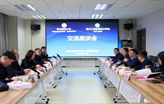 饶萍副校长高度肯定了我院地理学科取得的成绩,对学院的热情接待表示感谢。他简要介绍了贵州工程应用技术学院的发展历程和办学特色,明确了此次调研的主要目的。薛晓辉院长从学科建设方面介绍了资源与环境专业硕士点申报筹备工作,与会双方围绕相关议题进行了充分的交流。