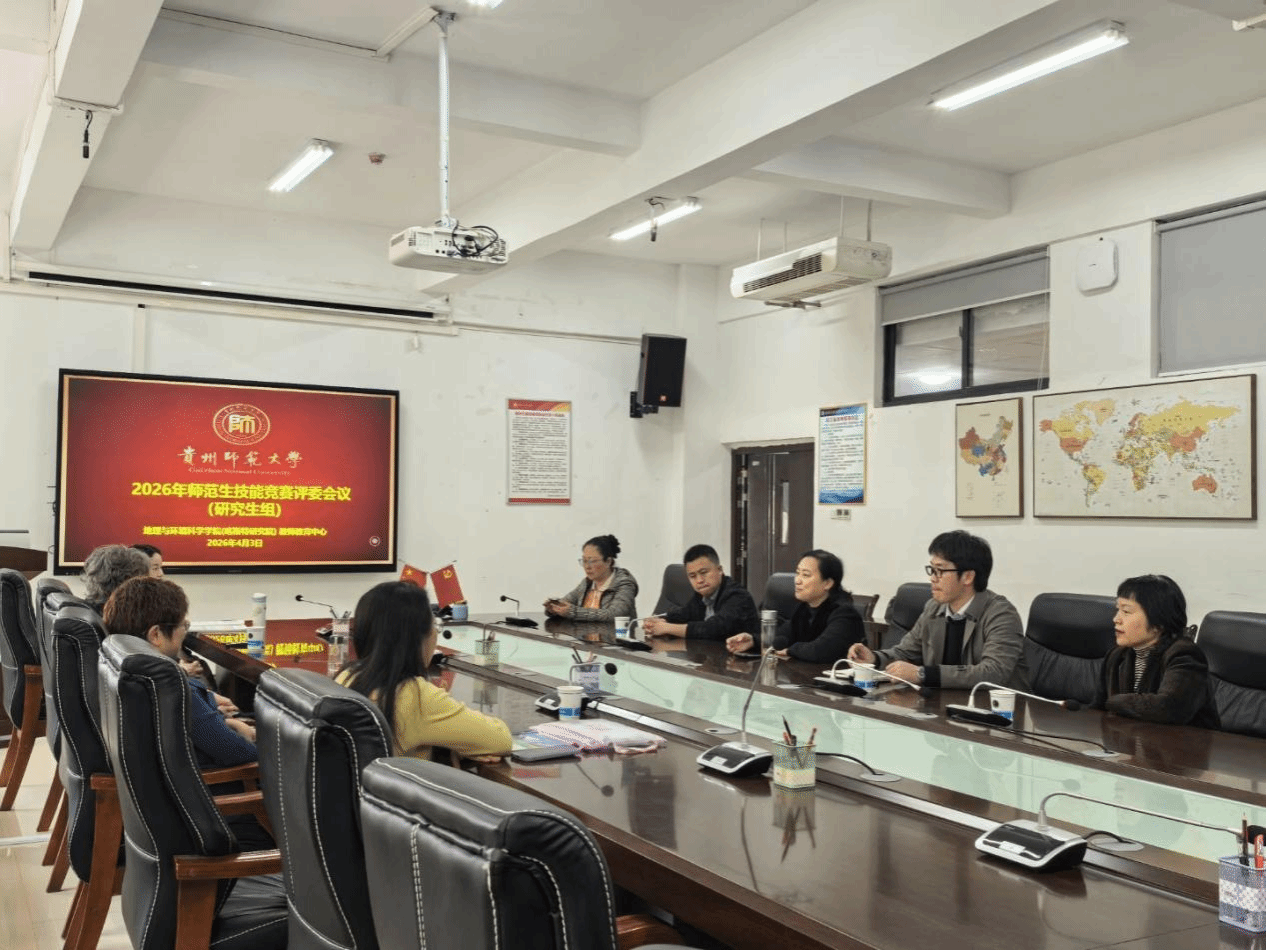 2026年4月3日,我院成功举办全日制地理教育硕士专业学位研究生教学技能大赛。本次比赛特邀中学地理教育领域资深教师担任评委,校外评委有贵阳市民族中学正高级教师青渝、贵阳一中原正高级教师王利亚、贵阳实验三中原高级教师黄桂英、贵州师范大学附中高级教师罗家杨、贵阳市教育科学研究院教研员薛佳佳、溪南高中一级教师江攀;校内评委有何红、李亦秋、周光发3位教师。副院长赵翠薇出席现场观摩指导。