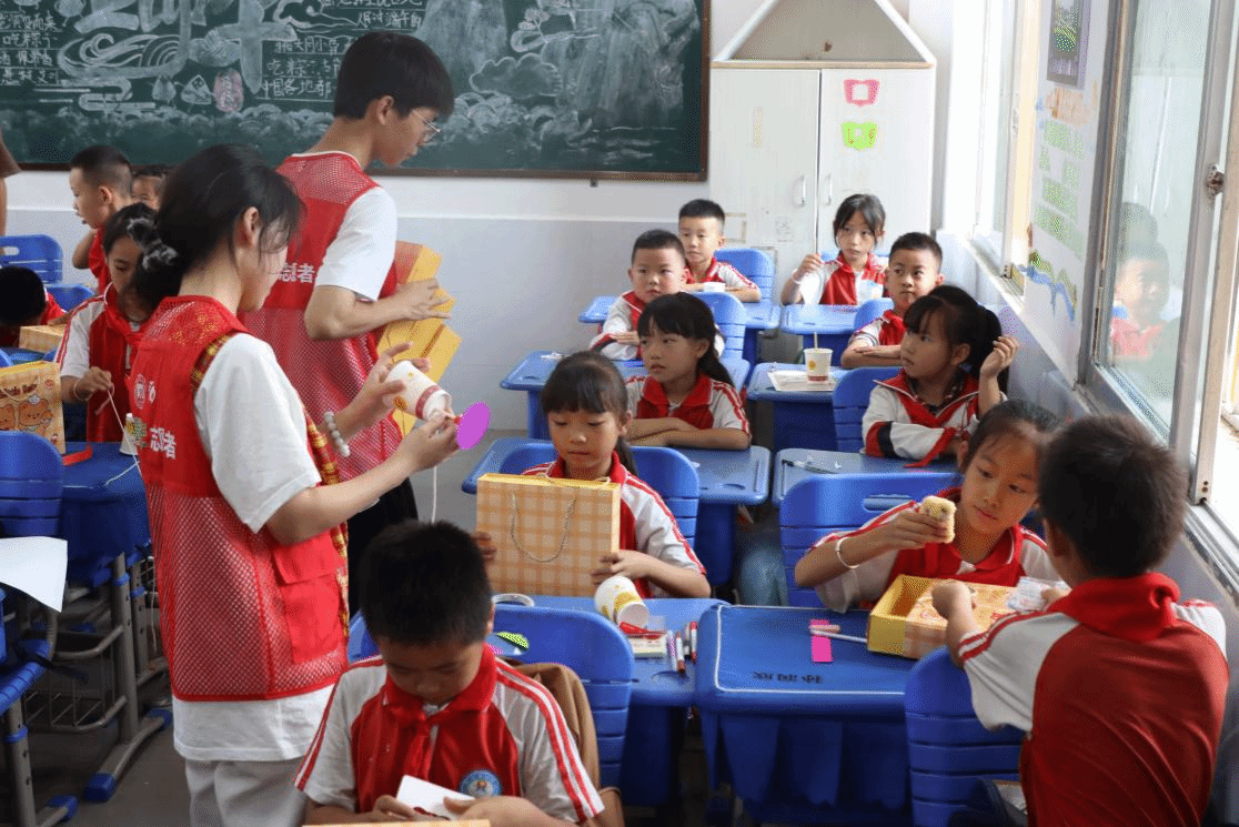 最受欢迎的是“我是小工匠——风扇DIY”环节。支教团成员们逐步讲解基本原理,分发材料,手把手教小朋友们组装属于自己的小风扇。小朋友们认真动手操作,互相帮助,教室里洋溢着兴奋与成就感。活动尾声,小朋友们举着自己亲手做的小风扇与支教团成员们合影留念,脸上满是自豪。