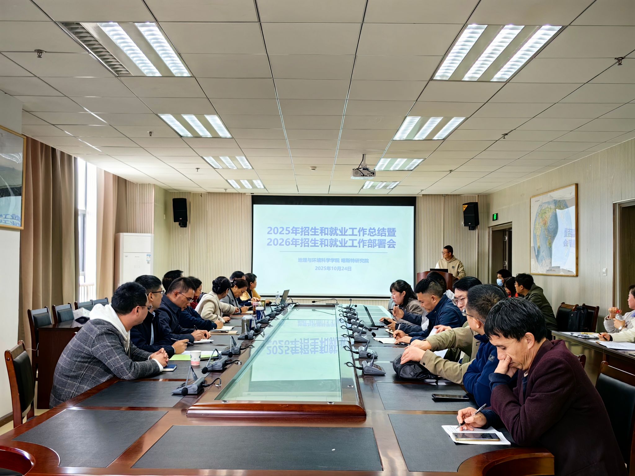 为全力做好我院招生和就业工作,切实推进毕业生高质量就业创业,提升就业竞争力,促进毕业生多渠道就业创业,10月24日下午,地理与环境科学学院(喀斯特研究院)党委于西校区喀院楼401会议室召开2025年招生和就业工作总结暨2026年招生和就业工作部署会。院党政班子成员、各系部主任、各科室负责人、毕业班辅导员等参加会议。会议由院党委书记郭锐主持。