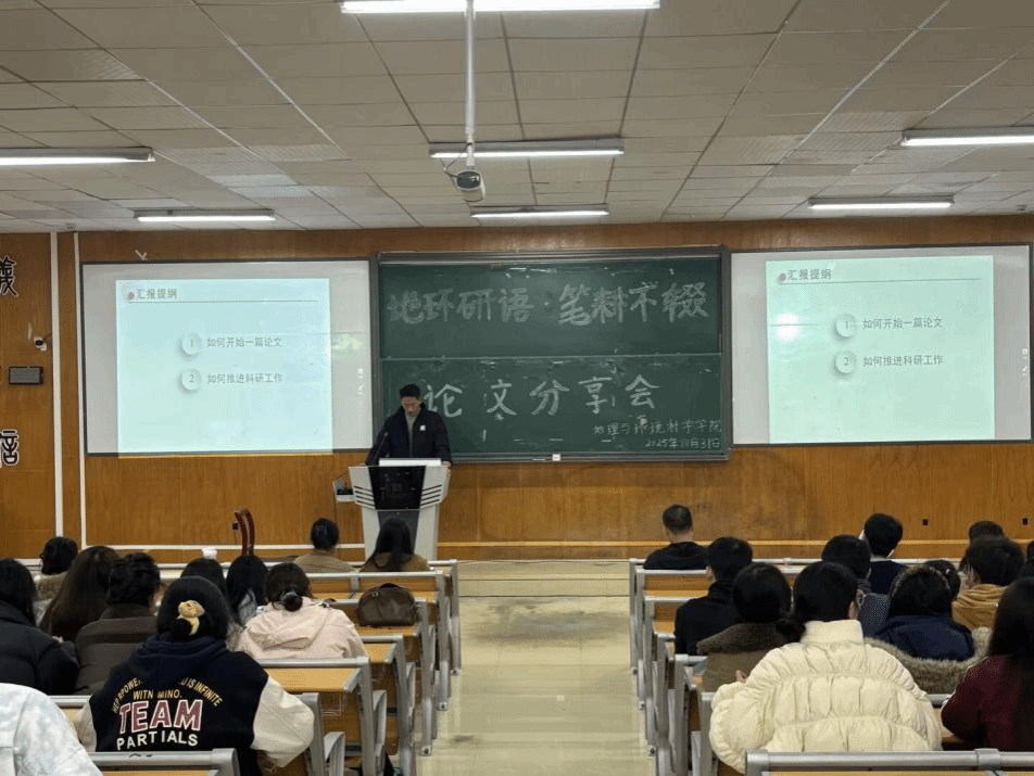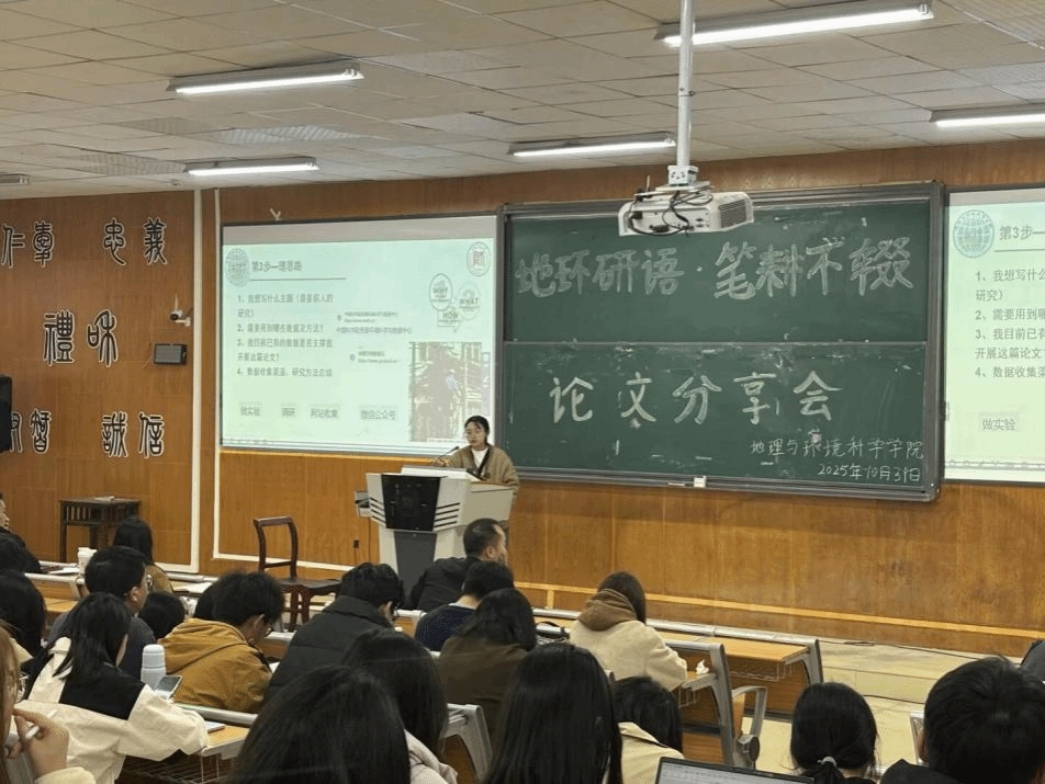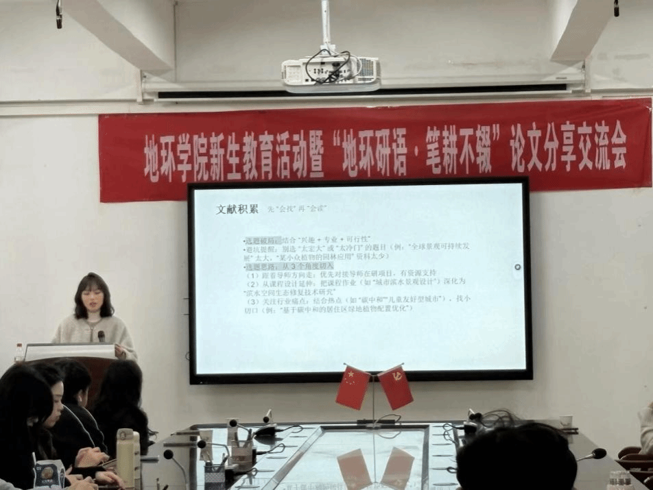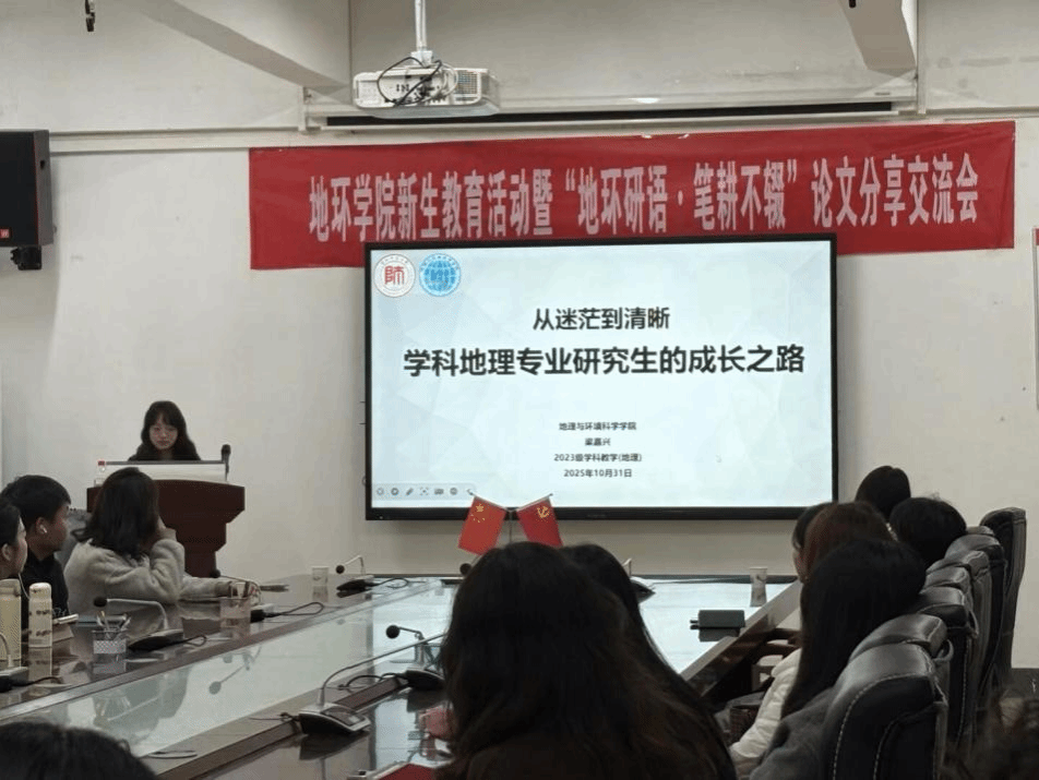 为助力2025级硕士新生尽快适应科研节奏、掌握论文写作技巧,10月31下午,我院举办“地环研语•笔耕不辍”新生入学教育暨论文分享交流会。我院2024级博士研究生薛习习、2023级硕士研究生杜先丹、任雪、梁嘉兴、钟文雨5位同学分别在学术型硕士会场与专业型硕士会场同步进行分享。研究生管理科范艺馨、蔡永龙两位老师参加了本次活动。