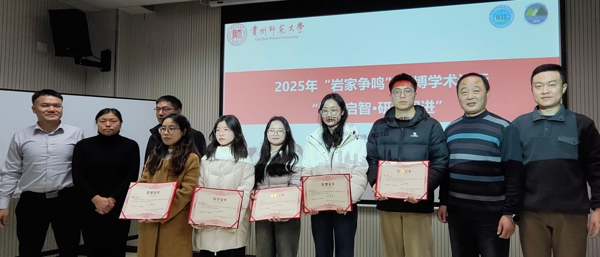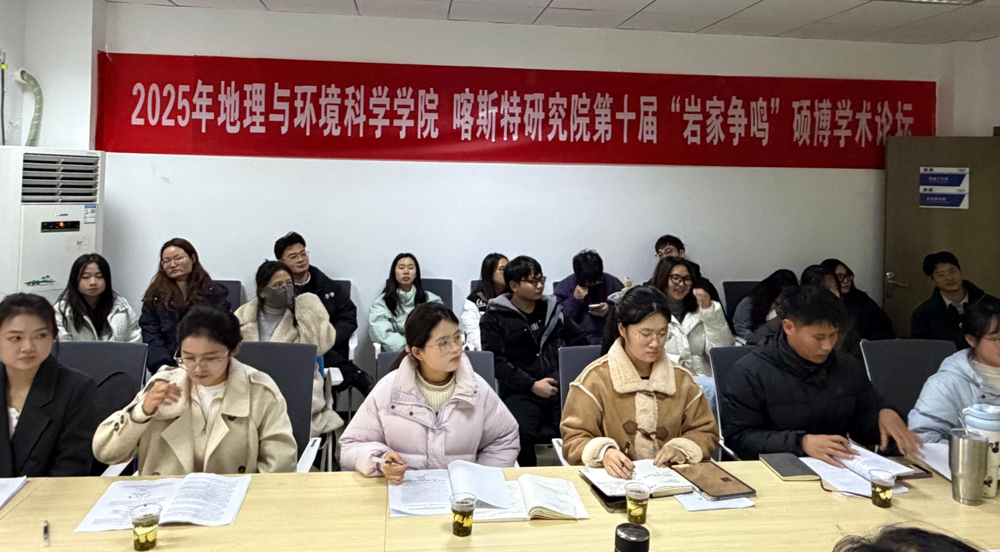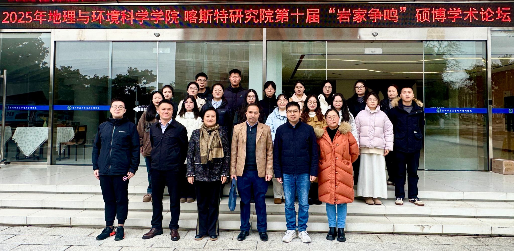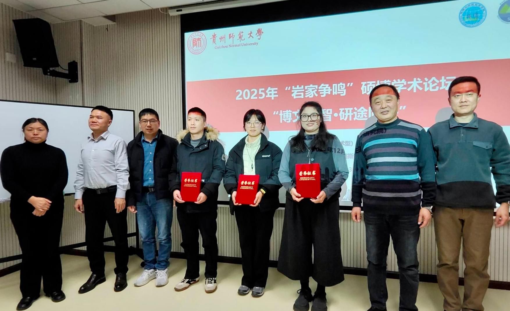2025年12月23日下午,贵州师范大学地理与环境科学学院(喀斯特研究院)“岩家争鸣”硕博学术论坛在学院隆重举行。本次论坛以“博文启智,研途共进”为主题,旨在为全院硕士与博士研究生搭建一个高水平、开放包容的学术交流平台,促进跨学科思想碰撞与学术对话,激发科研热情,营造积极严谨的学术氛围。
