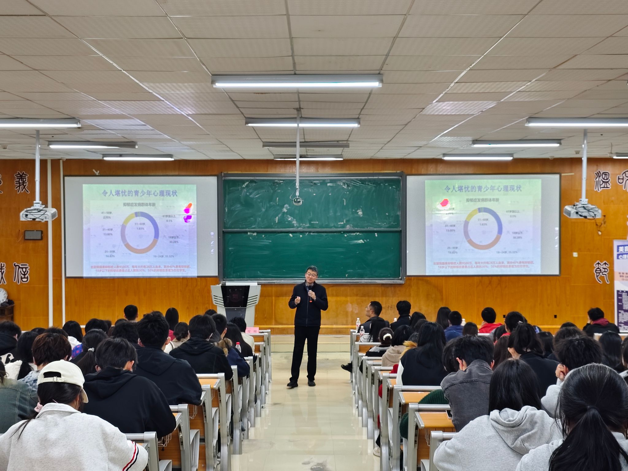 为深入贯彻落实习近平总书记关于青少年健康成长的重要论述,牢固树立“健康第一”教育理念,将“健康第一”一抓到底,切实提升心理健康工作队伍专业素养与应急处置能力,2026年3月30日,我院于3501道德讲堂开展“防患于未然:校园心理危机的识别与应对”专题培训。本次培训特邀心理学院程刚教授主讲,院党委副书记徐黎明主持,全体专兼职辅导员、本科生心理委员及寝室长、研究生代表共200余人参加。